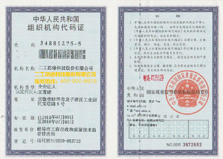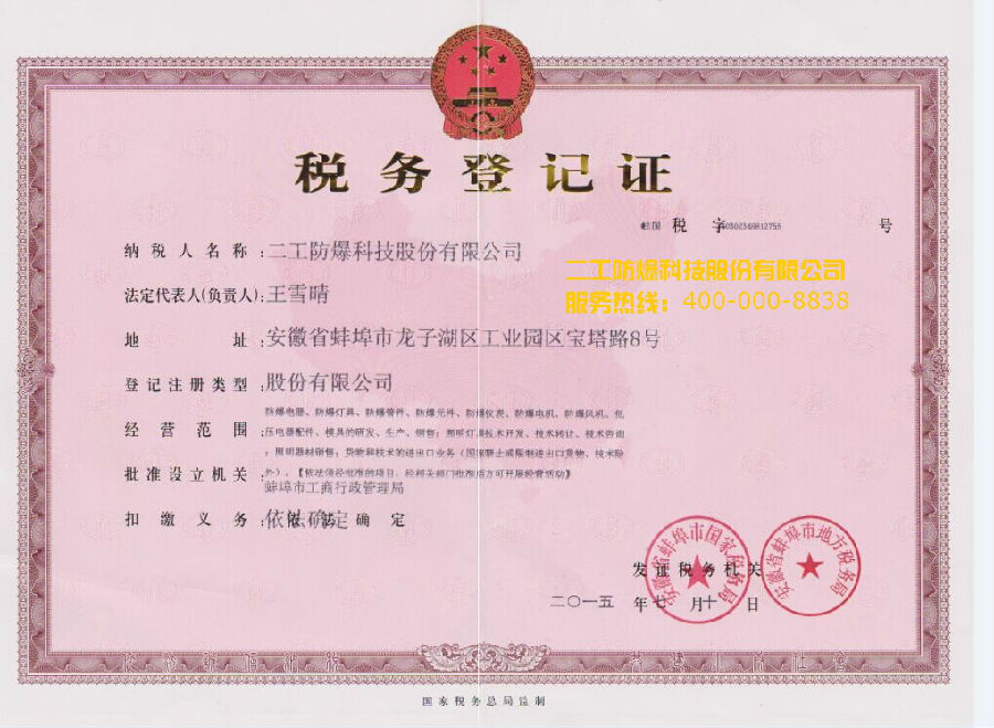 • 南陽防爆證書