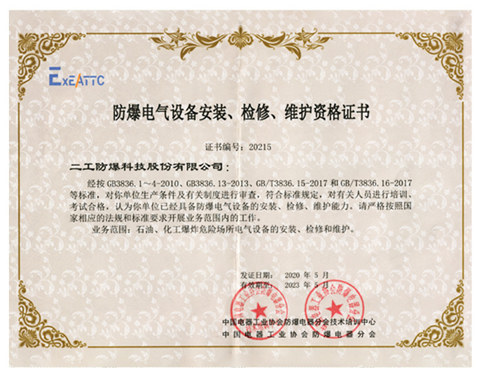 • 防爆設(shè)備安裝-檢修-維護(hù)資格..